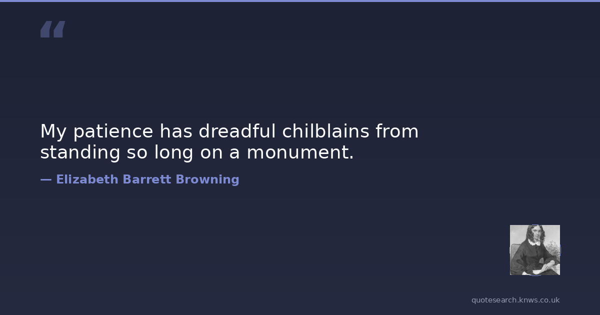 My patience has dreadful chilblains from standing so long on a monument.