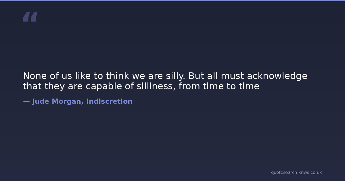 None of us like to think we are silly. But all must acknowledge that they are capable of silliness, from time to time