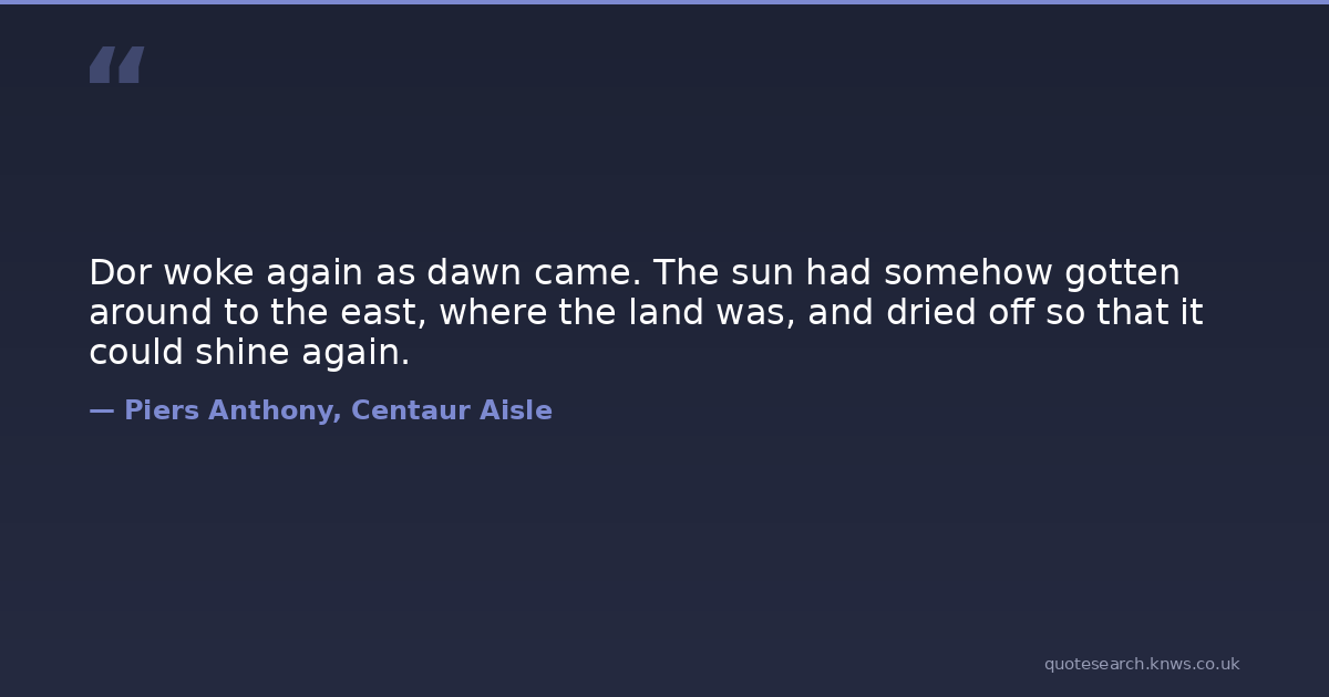 Dor woke again as dawn came. The sun had somehow gotten around to the east, where the land was, and dried off so that it could shine again.