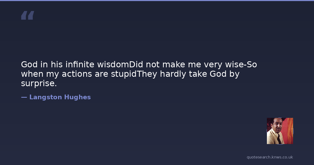 God in his infinite wisdomDid not make me very wise-So when my actions are stupidThey hardly take God by surprise.