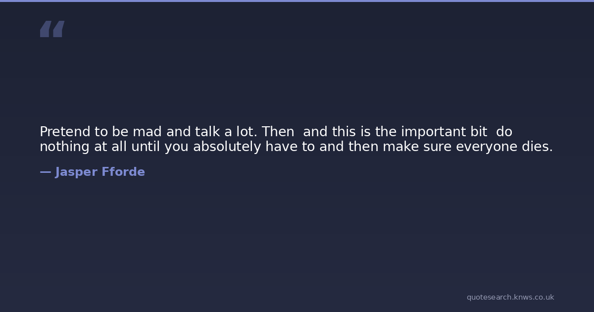Pretend to be mad and talk a lot. Then and this is the important bit do nothing at all until you absolutely have to and then make sure everyone dies.