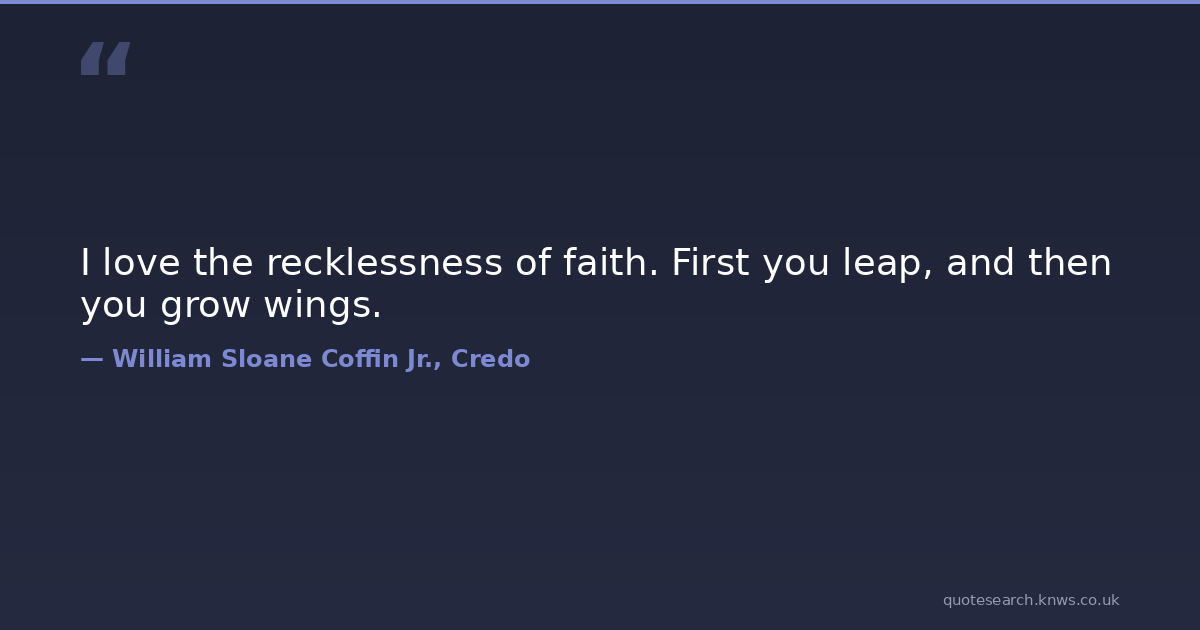 I love the recklessness of faith. First you leap, and then you grow wings. faith Download Image Share on X Share on Facebook Copy Link