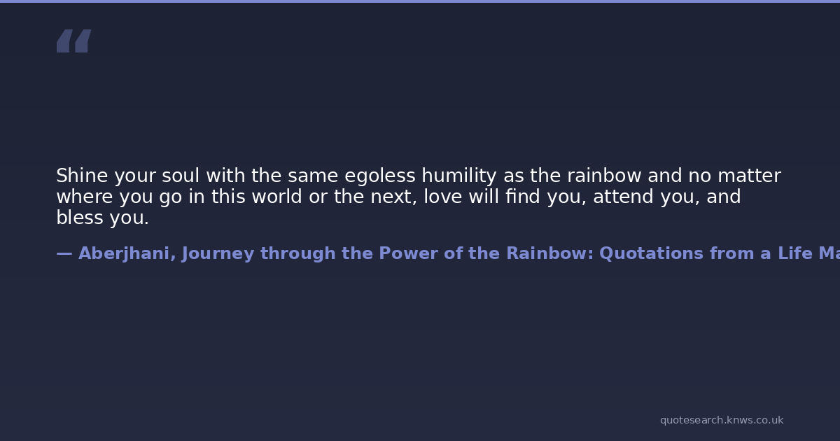 Shine your soul with the same egoless humility as the rainbow and no matter where you go in this world or the next, love will find you, attend you, and bless you.