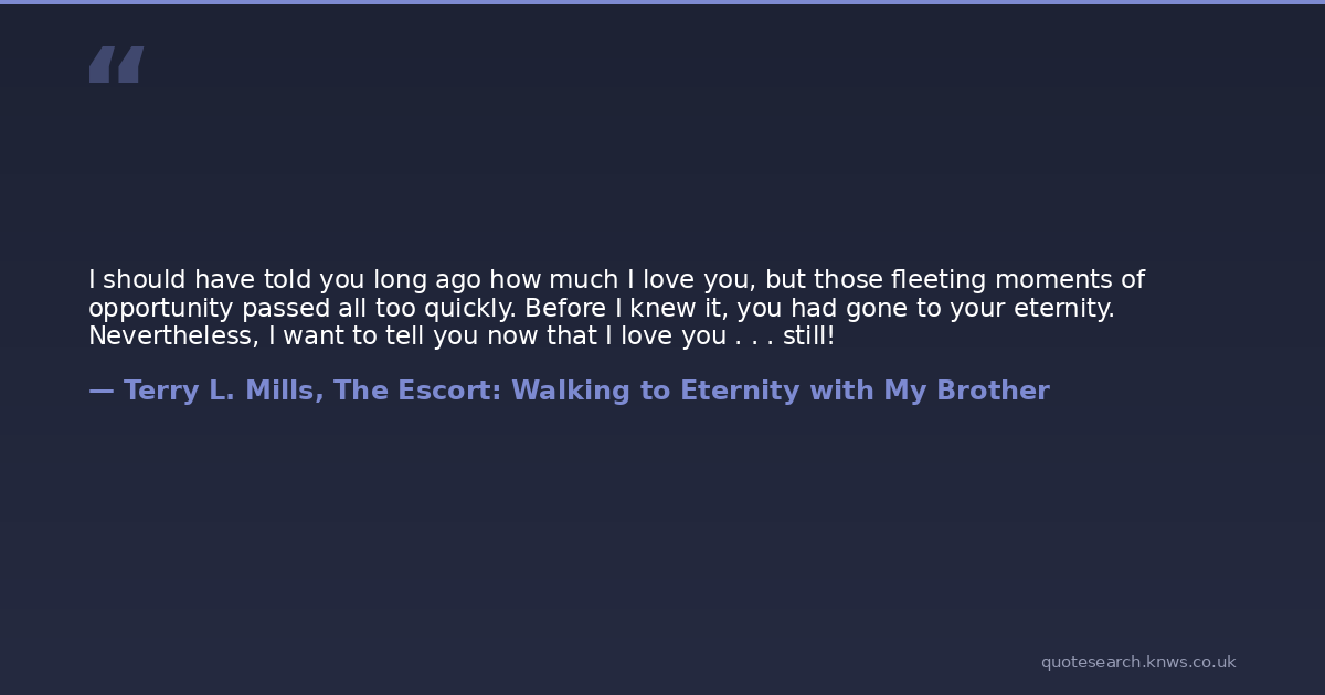 I should have told you long ago how much I love you, but those fleeting moments of opportunity passed all too quickly. Before I knew it, you had gone to your eternity. Nevertheless, I want to tell you now that I love you . . . still!