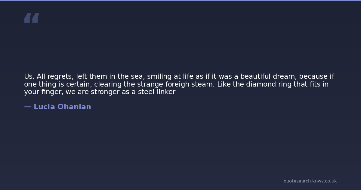 Us. All regrets, left them in the sea, smiling at life as if it was a beautiful dream, because if one thing is certain, clearing the strange foreigh steam. Like the diamond ring that fits in your finger, we are stronger as a steel linker