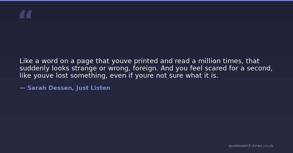 Like a word on a page that youve printed and read a million times, that suddenly looks strange or wrong, foreign. And you feel scared for a second, like youve lost something, even if youre not sure what it is.