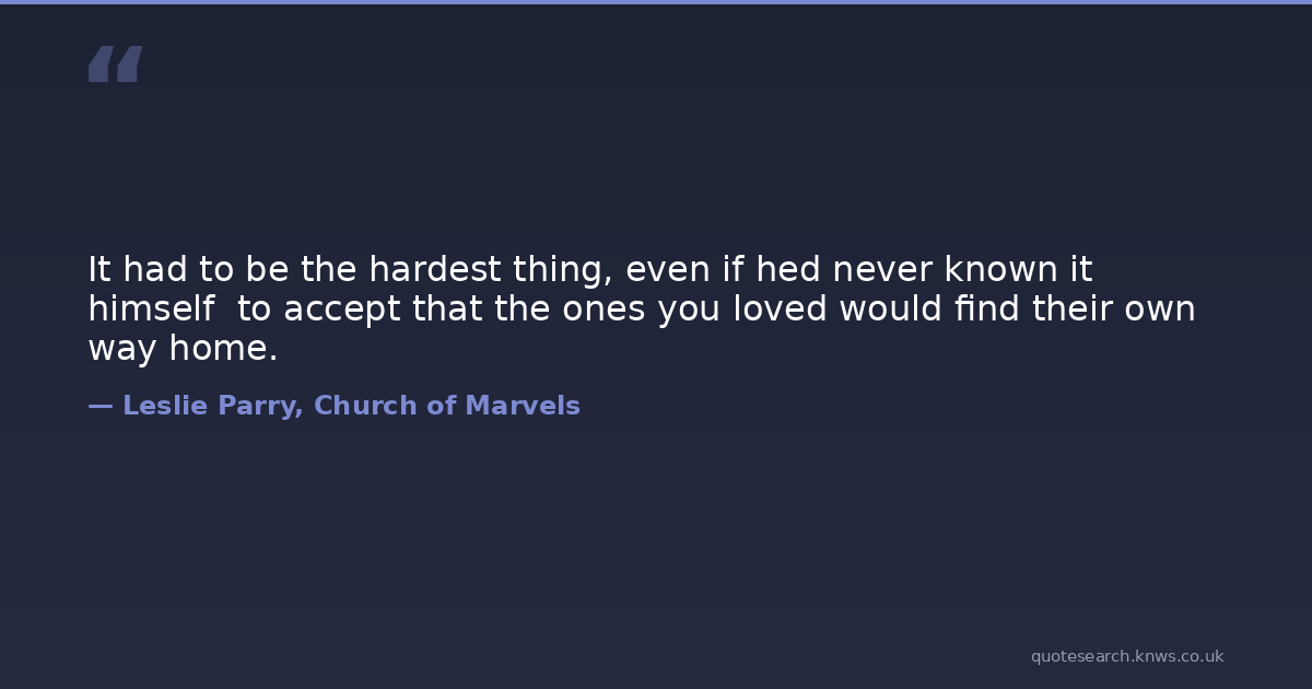 It had to be the hardest thing, even if hed never known it himself to accept that the ones you loved would find their own way home.