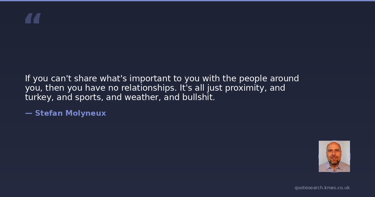 If you can't share what's important to you with the people around you, then you have no relationships. It's all just proximity, and turkey, and sports, and weather, and bullshit.