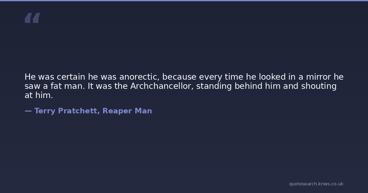He was certain he was anorectic, because every time he looked in a mirror he saw a fat man. It was the Archchancellor, standing behind him and shouting at him.