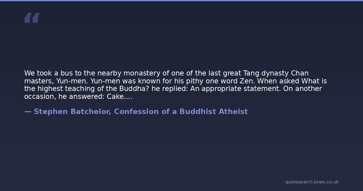 We took a bus to the nearby monastery of one of the last great Tang dynasty Chan masters, Yun-men. Yun-men was known for his pithy one word Zen. When asked What is the highest teaching of the Buddha? he replied: An appropriate statement. On another occasion, he answered: Cake. I admired his directness.