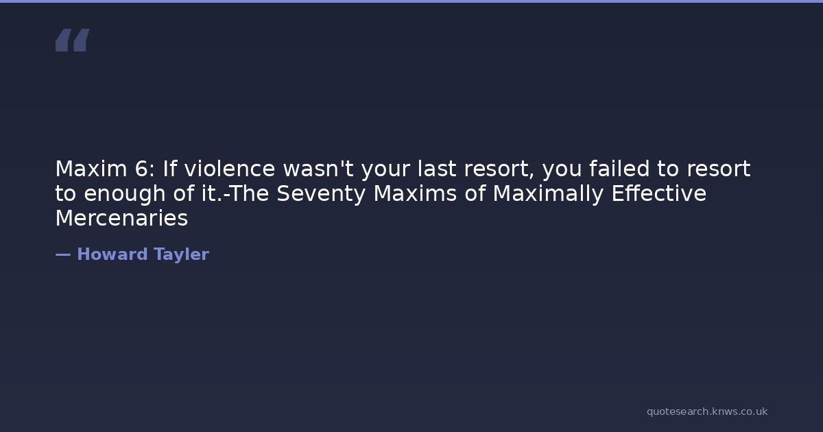 Maxim 6: If violence wasn't your last resort, you failed to resort to enough of it.-The Seventy Maxims of Maximally Effective Mercenaries