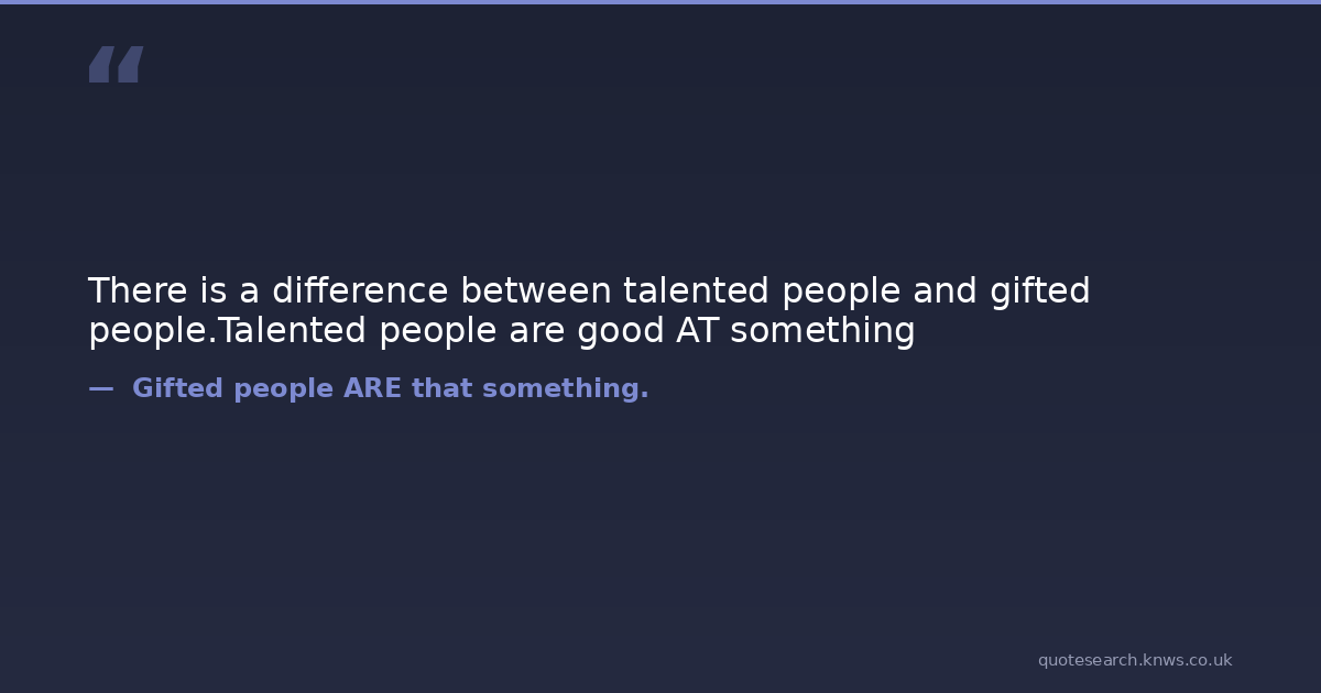 There is a difference between talented people and gifted people.Talented people are good AT something Steve Maraboli Unapologetically You: Reflections on Life and the Human Experience Download Image Share on X Share on Facebook Copy Link