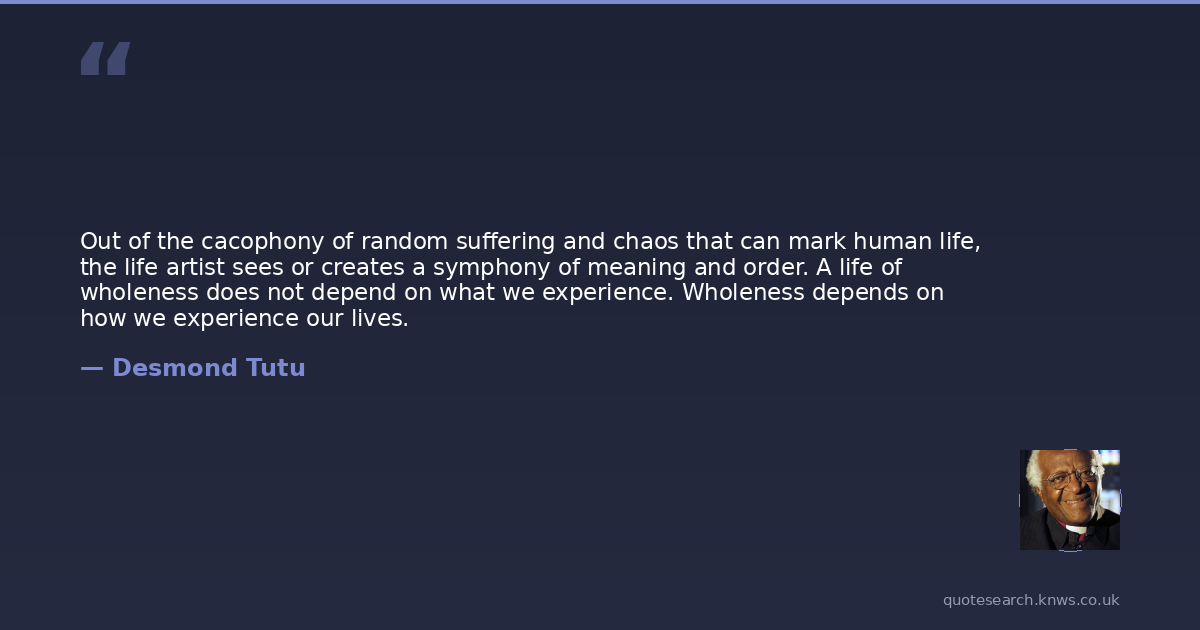 Out of the cacophony of random suffering and chaos that can mark human life, the life artist sees or creates a symphony of meaning and order. A life of wholeness does not depend on what we experience. Wholeness depends on how we experience our lives.