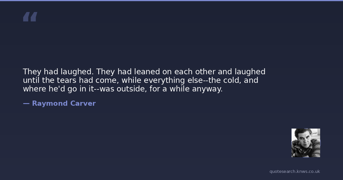 They had laughed. They had leaned on each other and laughed until the tears had come, while everything else--the cold, and where he'd go in it--was outside, for a while anyway.