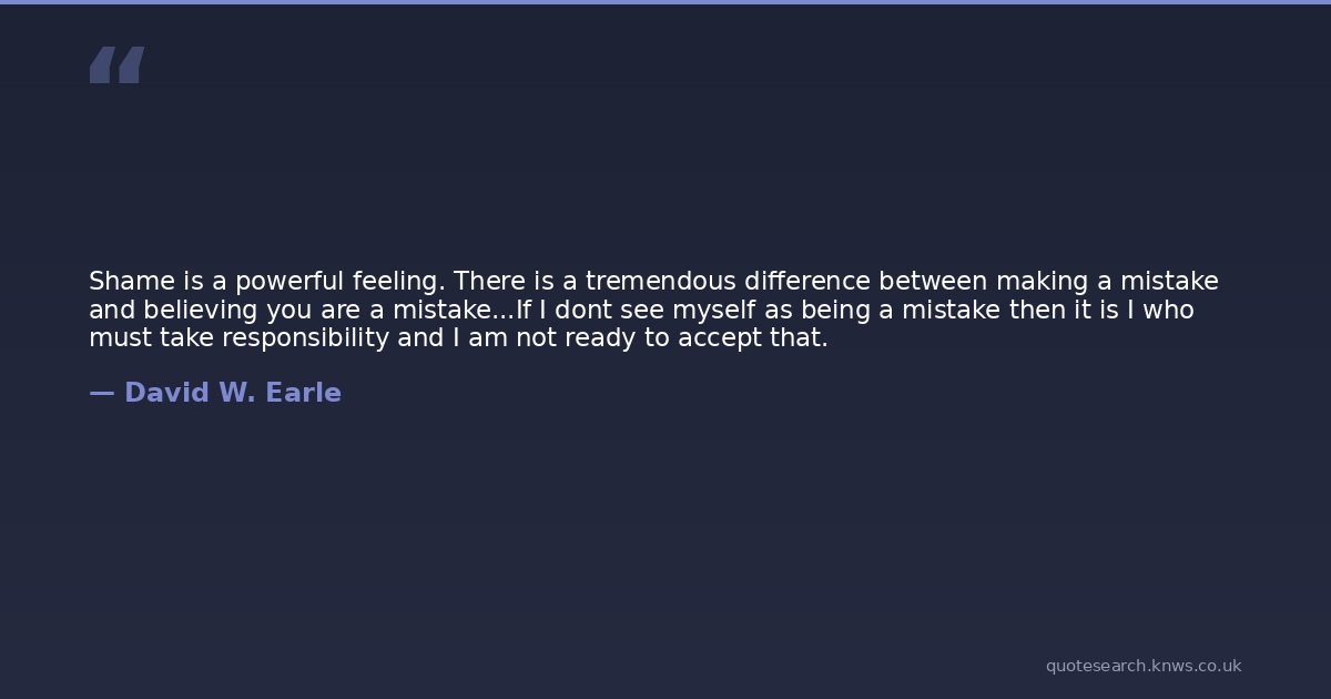 Shame is a powerful feeling. There is a tremendous difference between making a mistake and believing you are a mistake...If I dont see myself as being a mistake then it is I who must take responsibility and I am not ready to accept that.