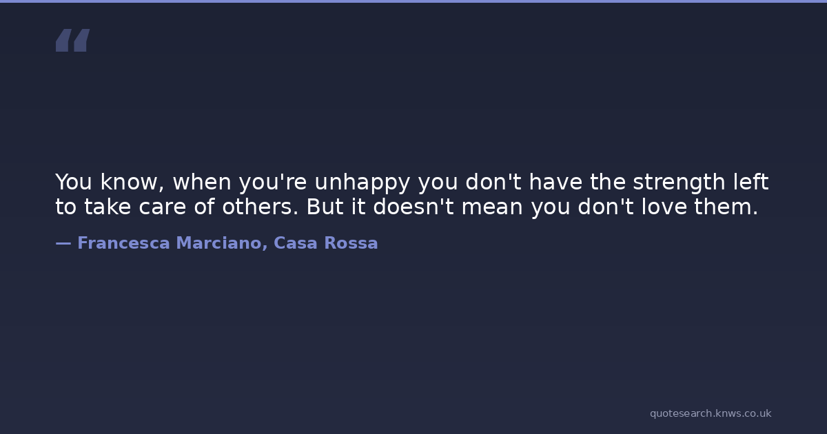 You know, when you're unhappy you don't have the strength left to take care of others. But it doesn't mean you don't love them.