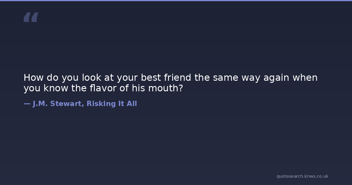 How do you look at your best friend the same way again when you know the flavor of his mouth?