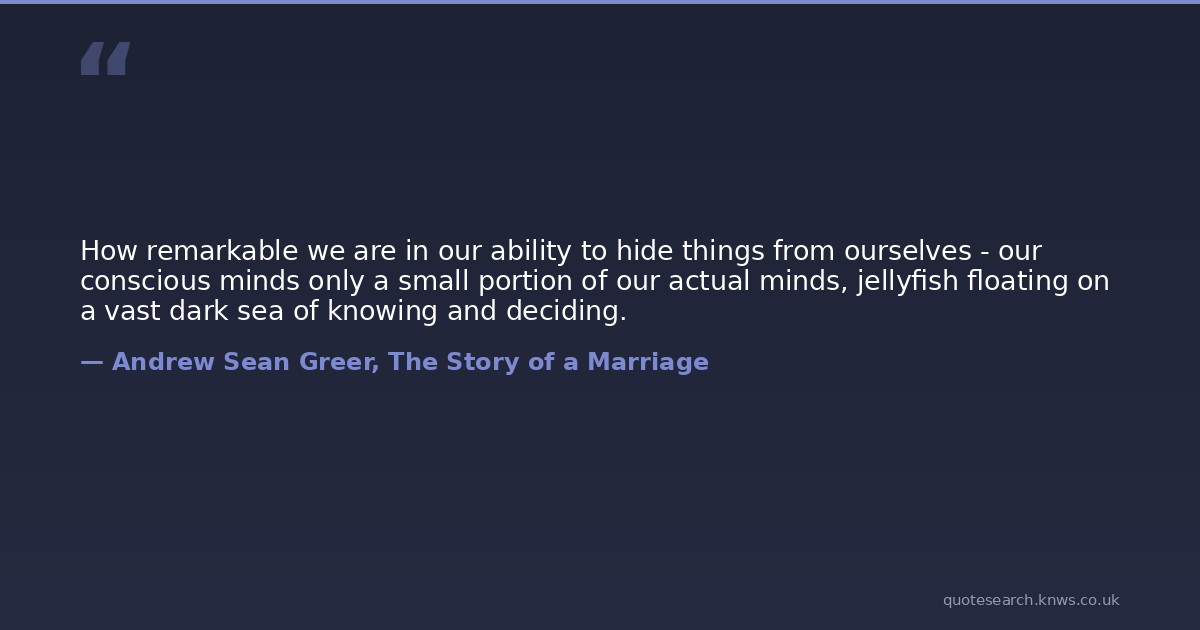 How remarkable we are in our ability to hide things from ourselves - our conscious minds only a small portion of our actual minds, jellyfish floating on a vast dark sea of knowing and deciding.