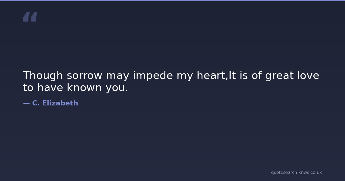 Though sorrow may impede my heart,It is of great love to have known you. heartache heartfelt loss love romance sorrow Download Image Share on X Share on Facebook Copy Link