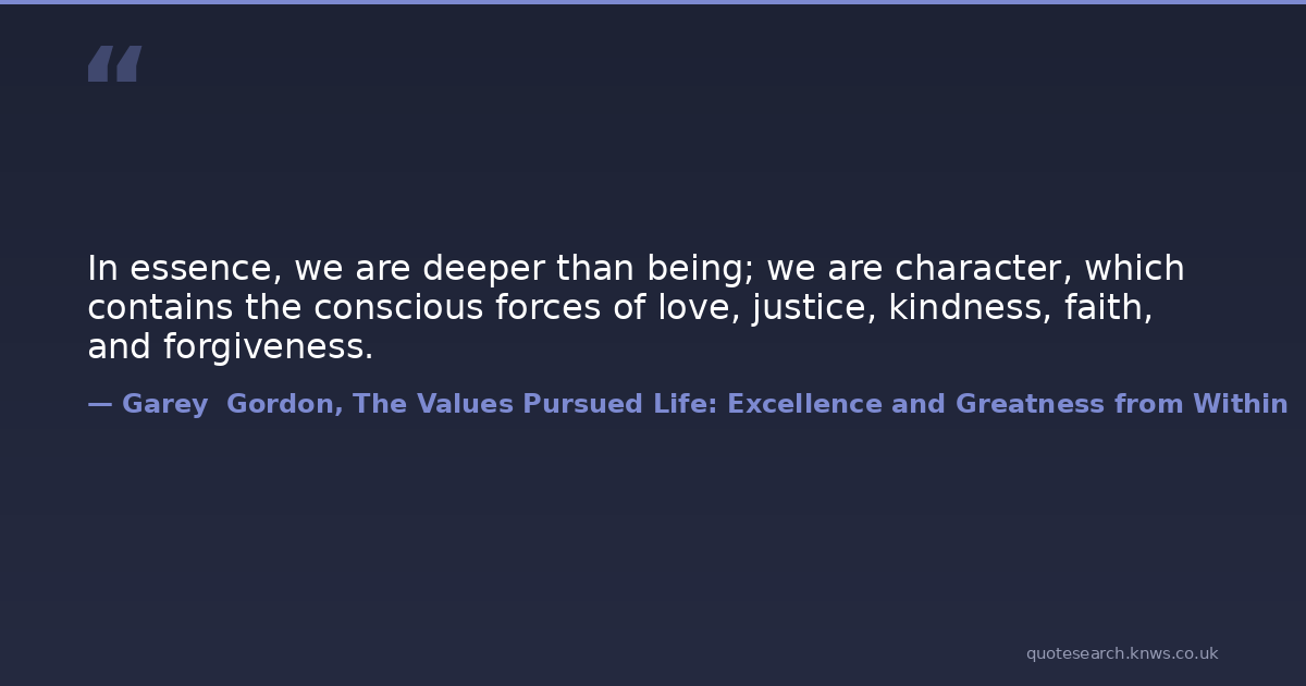 In essence, we are deeper than being; we are character, which contains the conscious forces of love, justice, kindness, faith, and forgiveness.