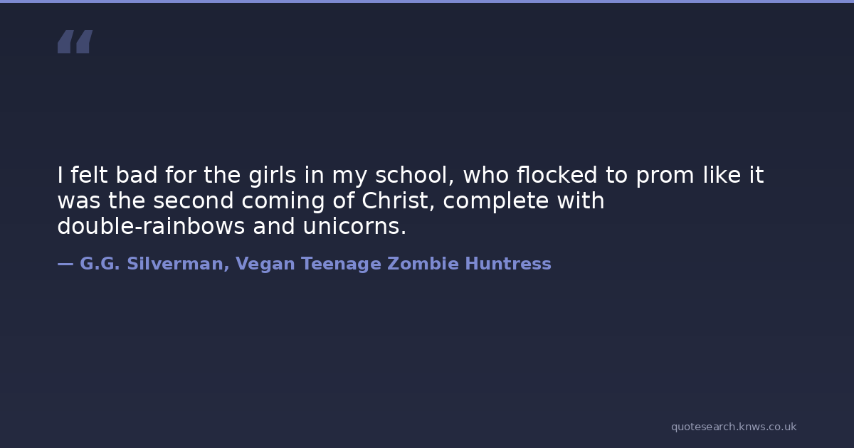 I felt bad for the girls in my school, who flocked to prom like it was the second coming of Christ, complete with double-rainbows and unicorns.