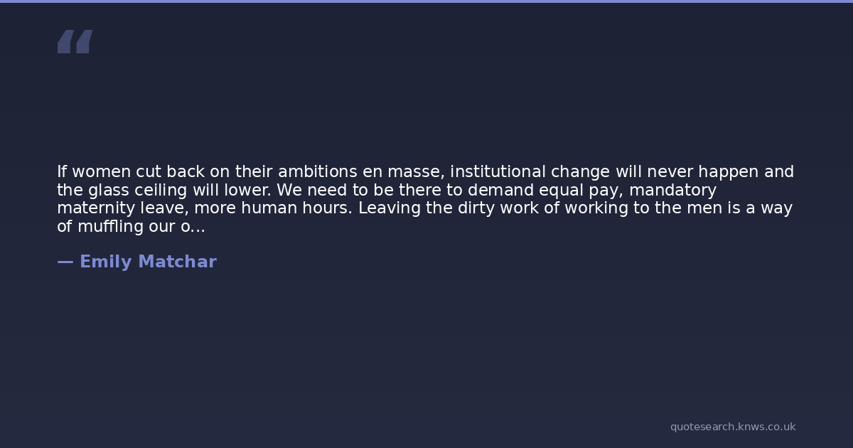 If women cut back on their ambitions en masse, institutional change will never happen and the glass ceiling will lower. We need to be there to demand equal pay, mandatory maternity leave, more human hours. Leaving the dirty work of working to the men is a way of muffling our own voices.