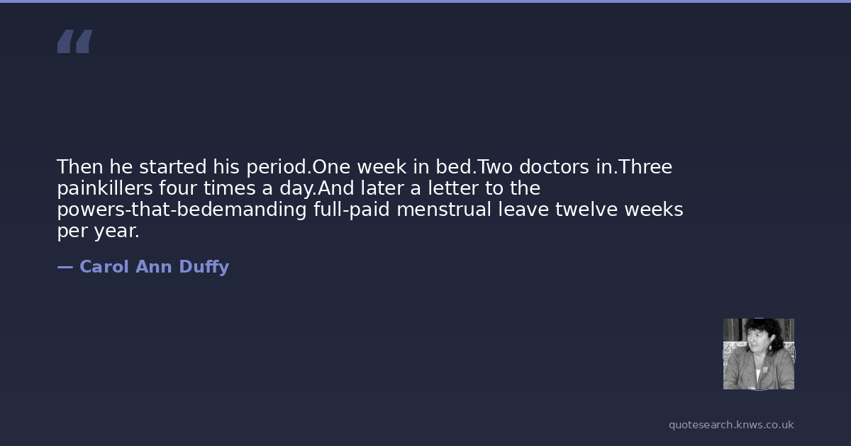 Then he started his period.One week in bed.Two doctors in.Three painkillers four times a day.And later a letter to the powers-that-bedemanding full-paid menstrual leave twelve weeks per year.