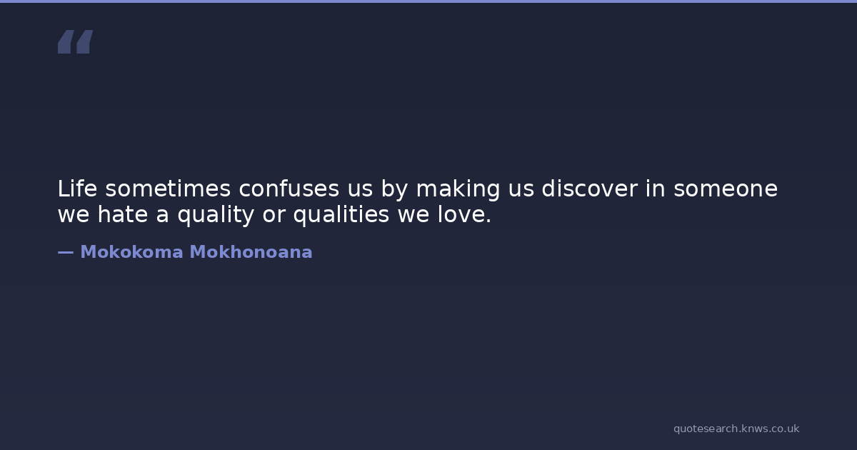 Life sometimes confuses us by making us discover in someone we hate a quality or qualities we love.