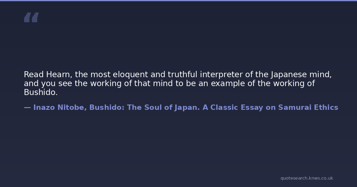 Read Hearn, the most eloquent and truthful interpreter of the Japanese mind, and you see the working of that mind to be an example of the working of Bushido.