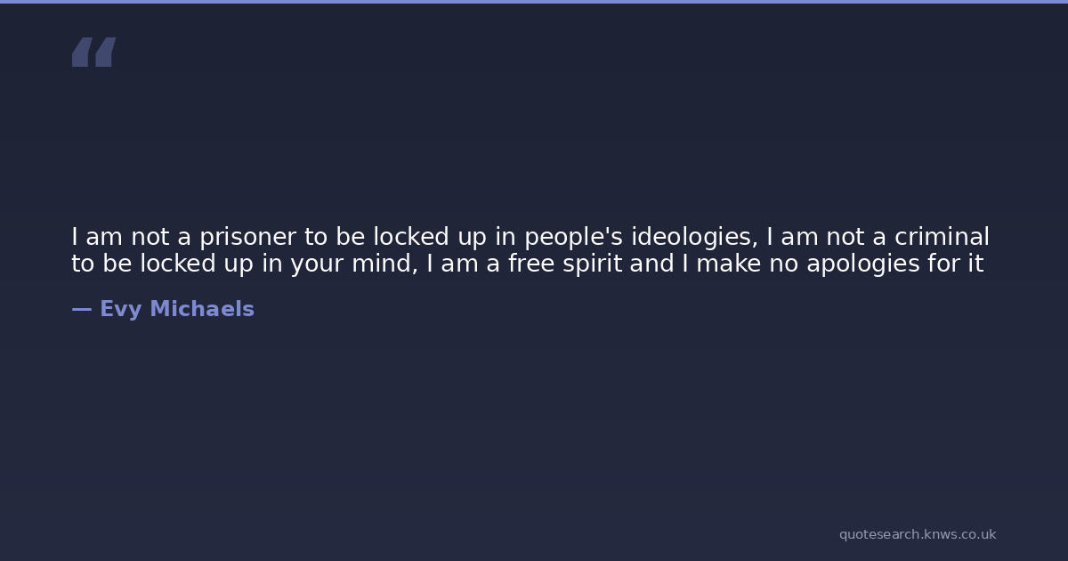 I am not a prisoner to be locked up in people's ideologies, I am not a criminal to be locked up in your mind, I am a free spirit and I make no apologies for it