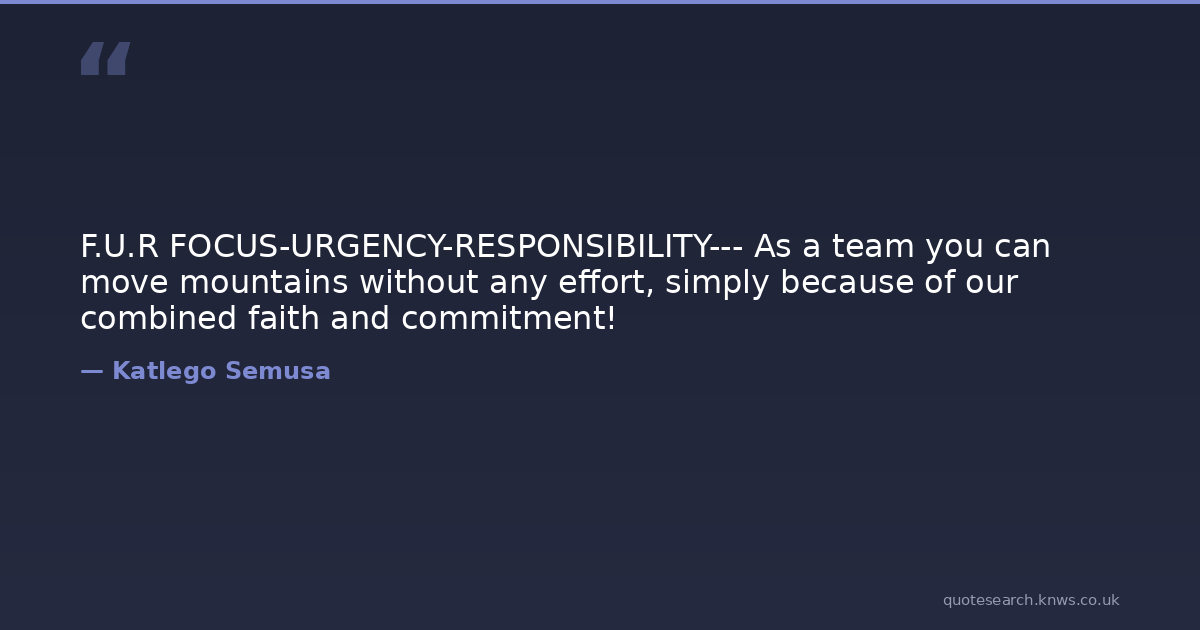F.U.R FOCUS-URGENCY-RESPONSIBILITY--- As a team you can move mountains without any effort, simply because of our combined faith and commitment!