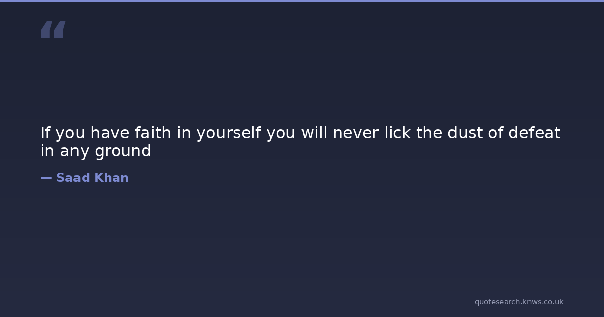 If you have faith in yourself you will never lick the dust of defeat in any ground
