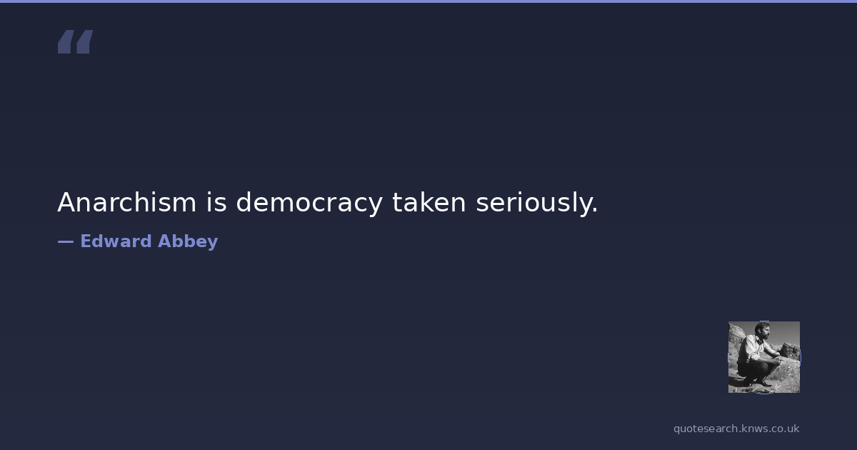Edward Abbey was a 20th-century American author advocating radical environmentalism. Edward Paul Abbey was an American author and essayist noted for his advocacy of environmental issues, criticism of public land policies, and anarchist political views. His best-known works include the novel The Monkey Wrench Gang, which has been cited as an inspiration by radical environmental groups, and the non-fiction work Desert Solitaire. Read more on Wikipedia →