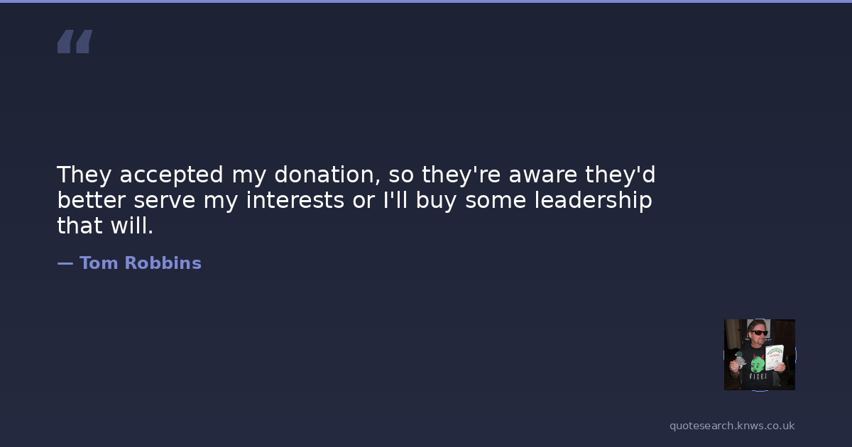 They accepted my donation, so they're aware they'd better serve my interests or I'll buy some leadership that will.