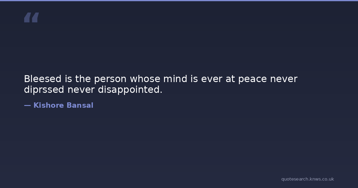 Bleesed is the person whose mind is ever at peace never diprssed never disappointed.