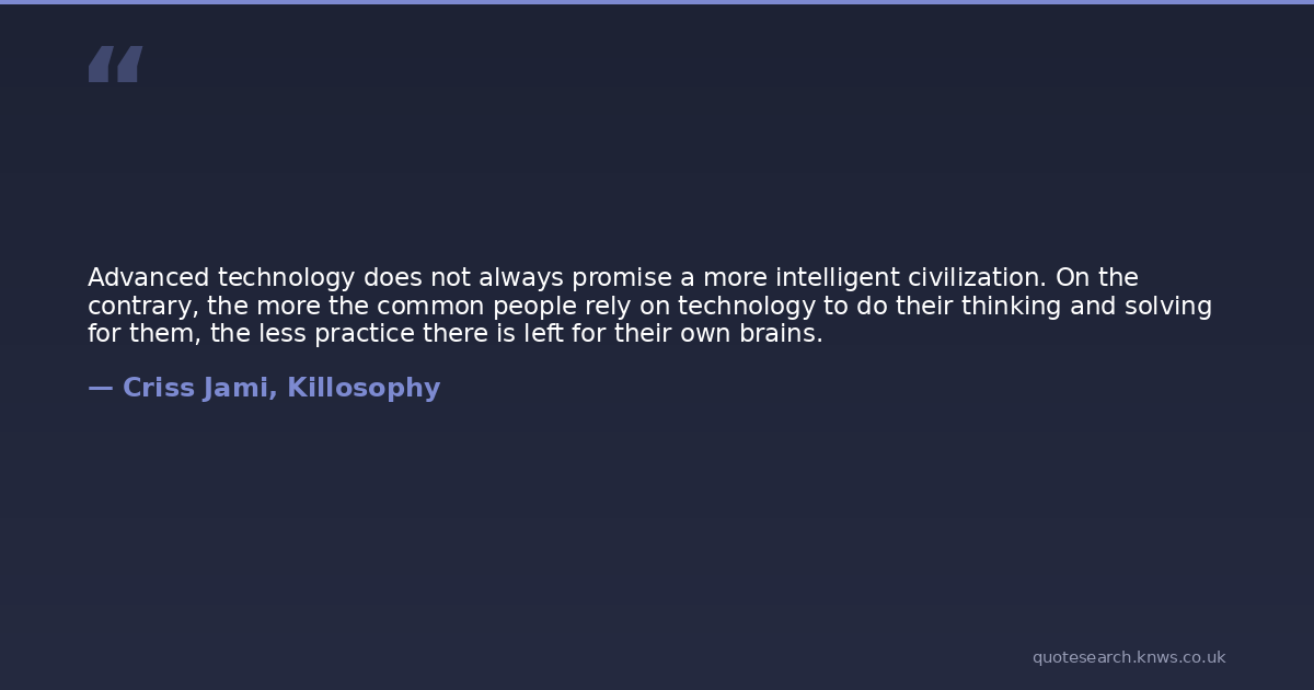 Advanced technology does not always promise a more intelligent civilization. On the contrary, the more the common people rely on technology to do their thinking and solving for them, the less practice there is left for their own brains.