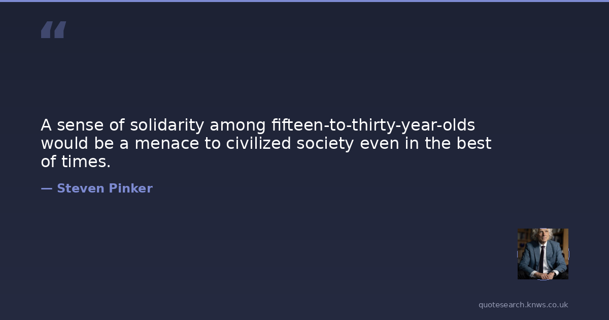 A sense of solidarity among fifteen-to-thirty-year-olds would be a menace to civilized society even in the best of times.