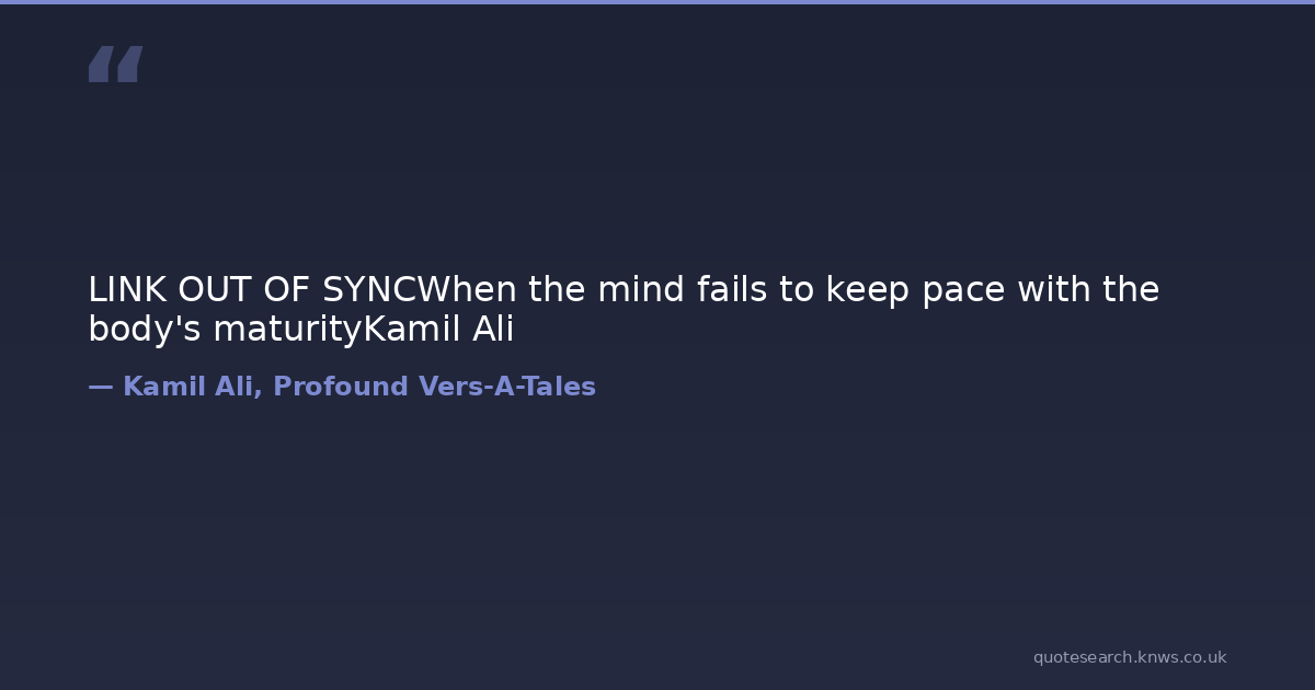 LINK OUT OF SYNCWhen the mind fails to keep pace with the body's maturityKamil Ali