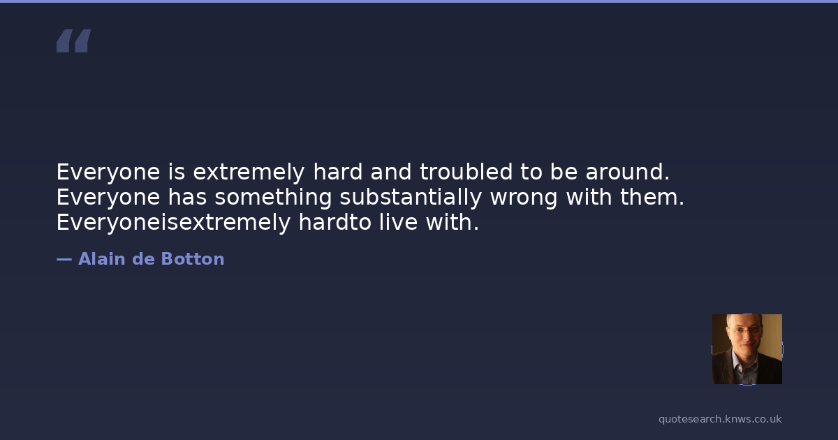 Everyone is extremely hard and troubled to be around. Everyone has something substantially wrong with them. Everyoneisextremely hardto live with.