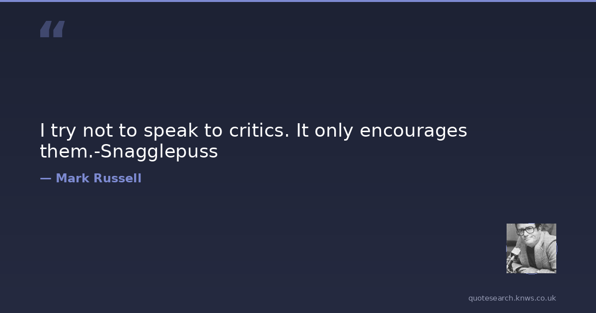 I try not to speak to critics. It only encourages them.-Snagglepuss