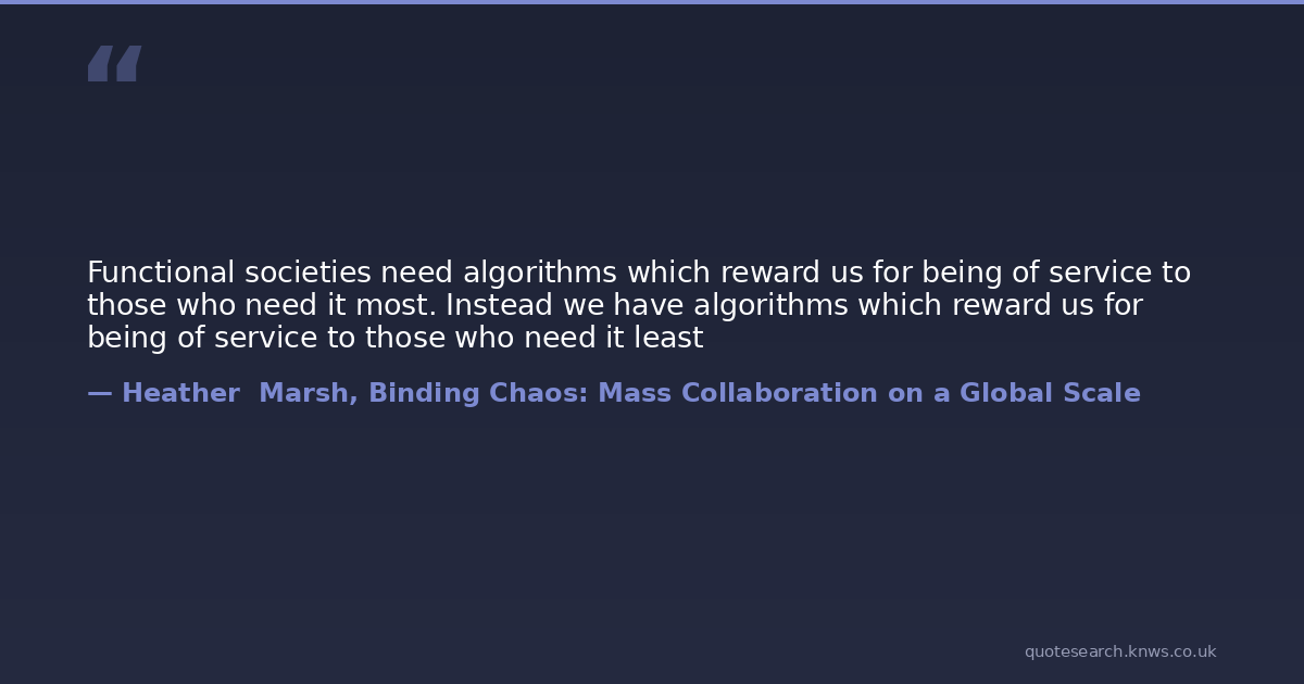 Functional societies need algorithms which reward us for being of service to those who need it most. Instead we have algorithms which reward us for being of service to those who need it least