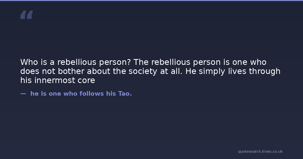 Who is a rebellious person? The rebellious person is one who does not bother about the society at all. He simply lives through his innermost core