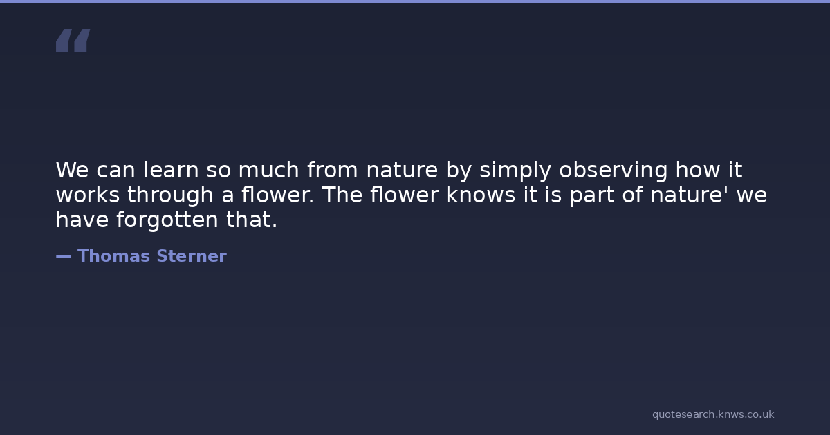 We can learn so much from nature by simply observing how it works through a flower. The flower knows it is part of nature' we have forgotten that.