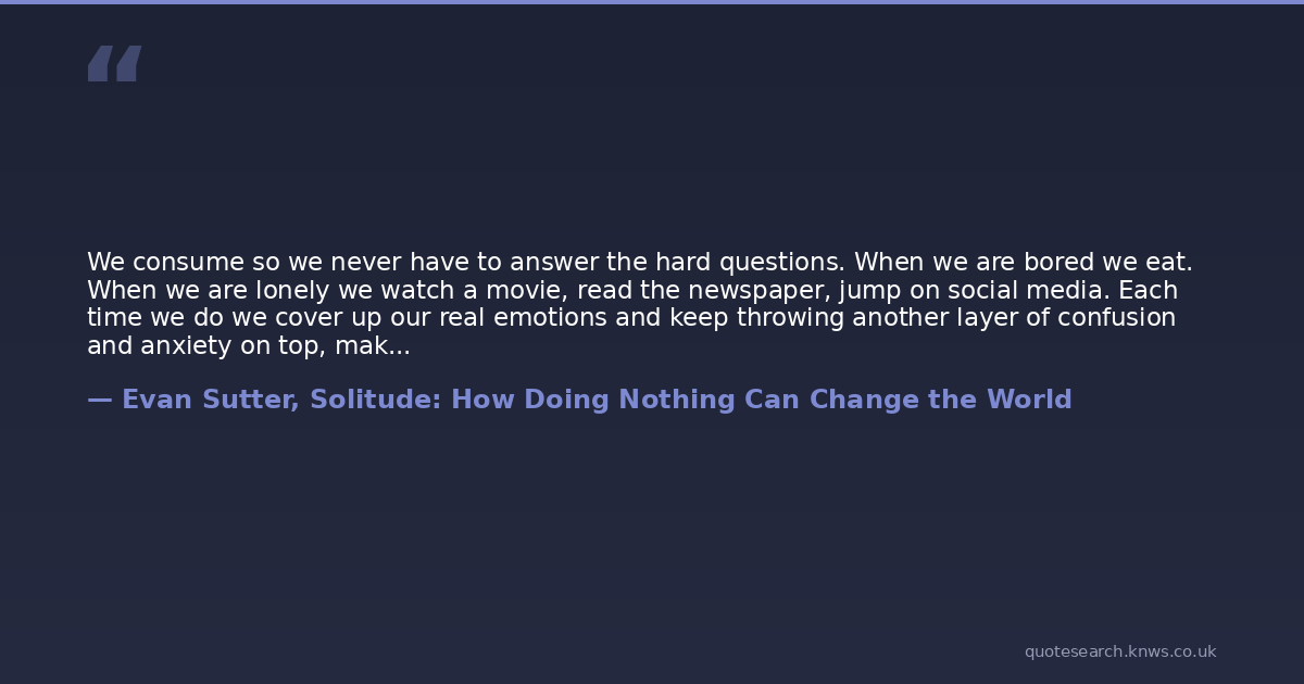 We consume so we never have to answer the hard questions. When we are bored we eat. When we are lonely we watch a movie, read the newspaper, jump on social media. Each time we do we cover up our real emotions and keep throwing another layer of confusion and anxiety on top, making it almost impossible to dig ourselves out of the hole, or at least see which way is up.