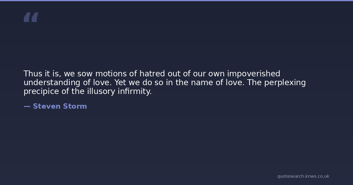 Thus it is, we sow motions of hatred out of our own impoverished understanding of love. Yet we do so in the name of love. The perplexing precipice of the illusory infirmity.