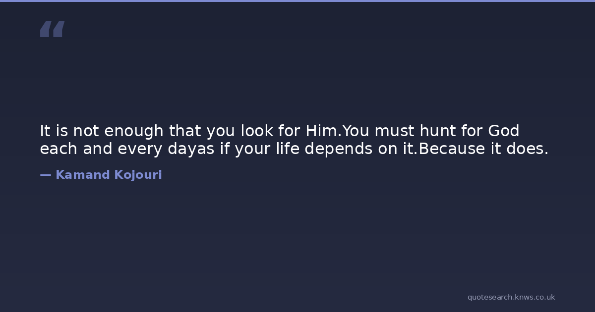 It is not enough that you look for Him.You must hunt for God each and every dayas if your life depends on it.Because it does.