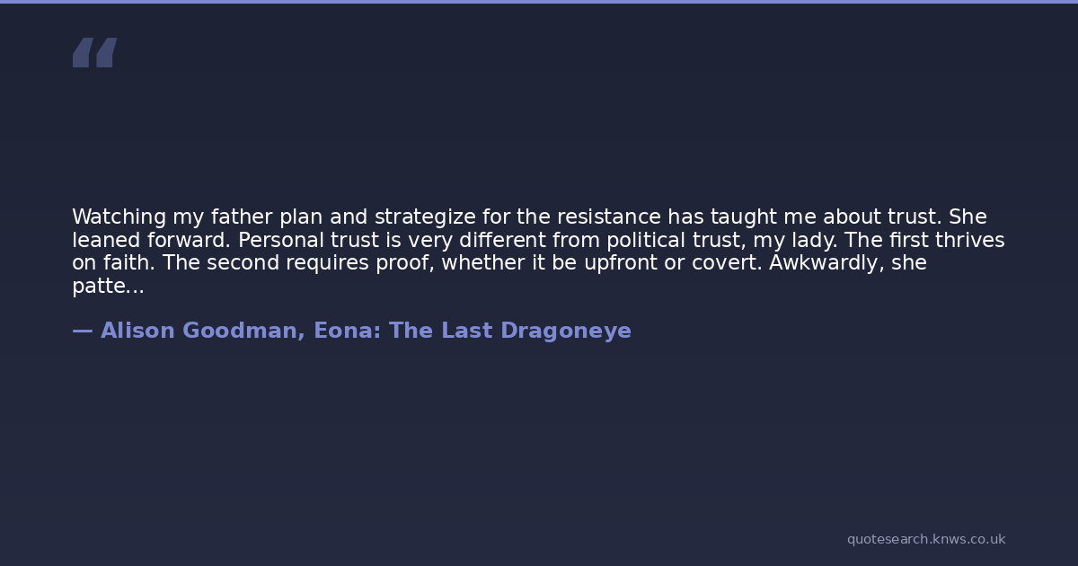 Watching my father plan and strategize for the resistance has taught me about trust. She leaned forward. Personal trust is very different from political trust, my lady. The first thrives on faith. The second requires proof, whether it be upfront or covert. Awkwardly, she patted my hand. His Majesty has always been a powerful man. Perhaps he has never had to distinguish between the two.