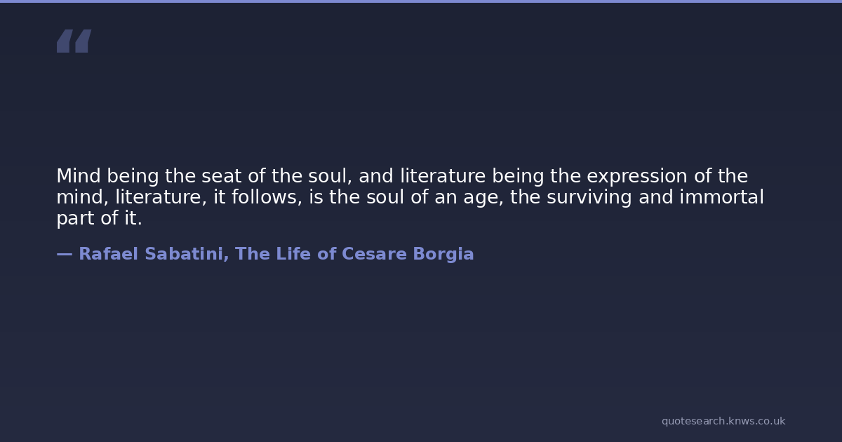 Mind being the seat of the soul, and literature being the expression of the mind, literature, it follows, is the soul of an age, the surviving and immortal part of it.