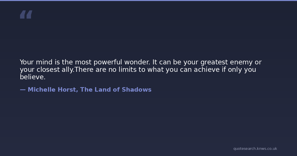 Your mind is the most powerful wonder. It can be your greatest enemy or your closest ally.There are no limits to what you can achieve if only you believe.