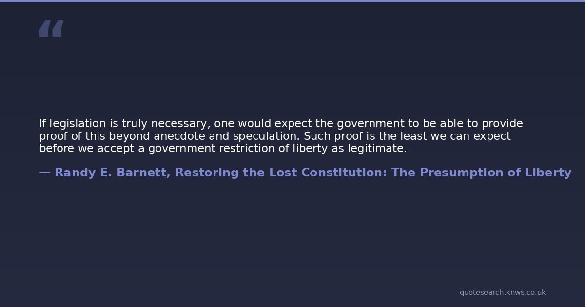 If legislation is truly necessary, one would expect the government to be able to provide proof of this beyond anecdote and speculation. Such proof is the least we can expect before we accept a government restriction of liberty as legitimate.
